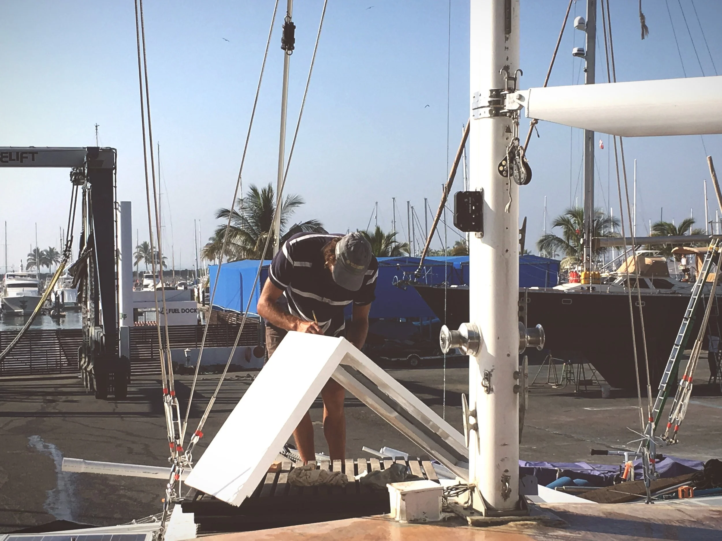 Some sections had to be repaired on the outside, and some of the lines replaced for the sails, which meant I had to climb high to the top of the mast at one point.